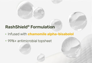 - 99%+ antimicrobial topsheet, dermatologist tested and approved